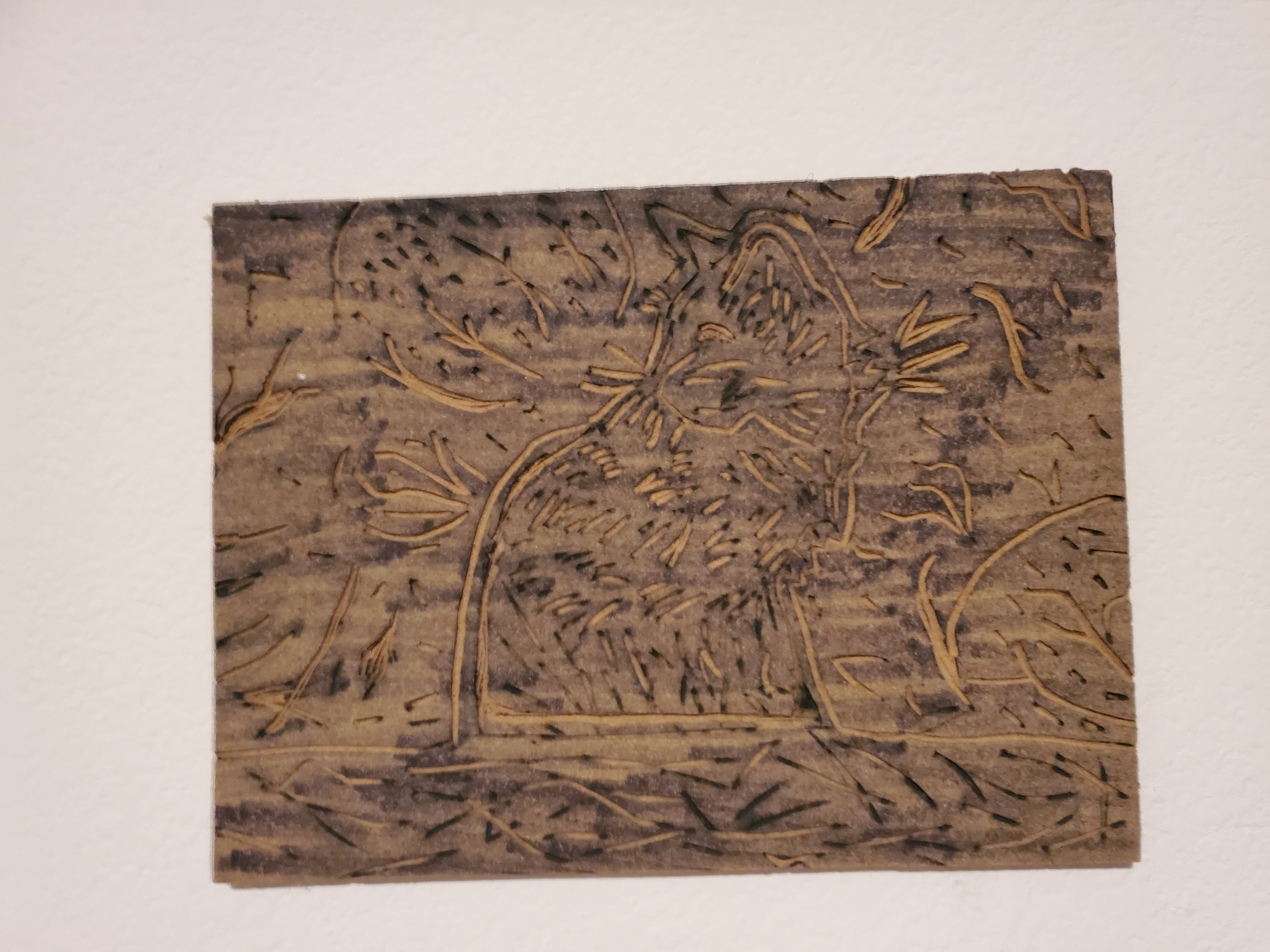 This project is done at the same period as the first two projects so I can't recall it that well, this project's idea was taking a board and carving out the part that you want to leave white, and after it did you take the ink and ink the design on a white paper.