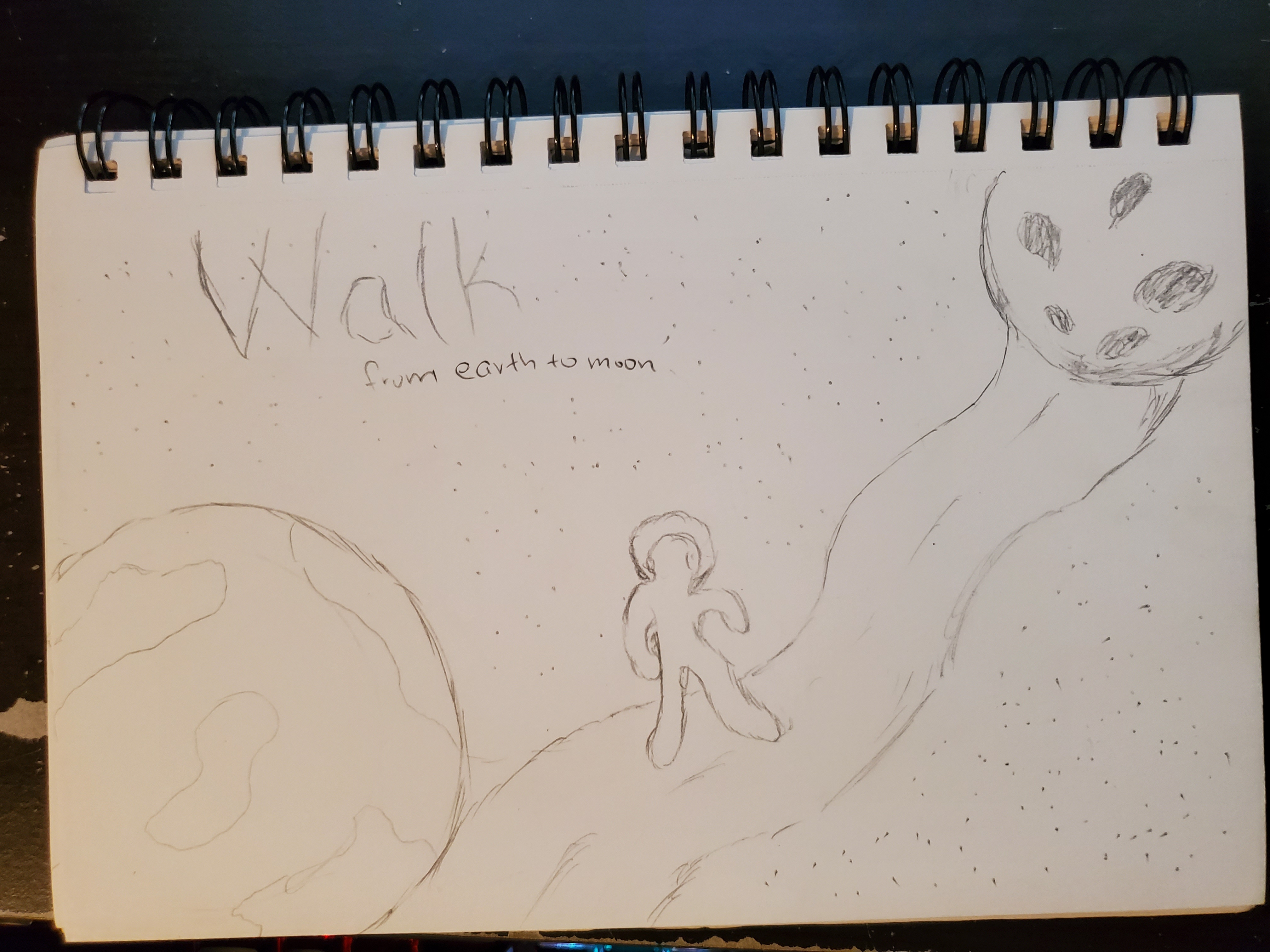 This is a sketch for a project this semester, the topic is space and how in the future people will travel throughout space with the technology we have. The setting here is that in the future humans can just walk to the moon and the time consumed in progress won't take long at all, just like teleport with a bit longer time consuming moving at the speed of light.
